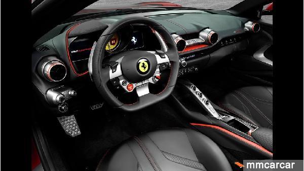 812 Superfast在外觀上則較F12 berlinetta在車頭與車側多了一些鈑件摺線,特別是在前後保桿兩側增加導流孔,除了看起來增添了幾分殺氣,想必對於行車穩定性也大有助益。頭燈換上全新設計的LED燈組,頭燈輪廓更為銳利一改前世代的圓潤造型,尾燈也改為雙邊共四顆的造型,原廠亦說明車輛尾部重新設計過,高翹的尾部與個性鮮明的鈑線除了有更優異的空氣力學表現,更是在向1969年的Ferrari 365 GTB4致敬。