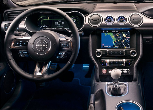 當然要完美重現經典,最能代表野馬精神的 V8 心臟可不能少,Mustang Bullitt 是基於 GT 車型所打造而成,GT 搭載的 5.0L V8 自然進氣引擎當然不能缺席,不過經過 Ford 原廠工程師移植 GT350 的 87mm 進氣岐管與高流量空濾等進氣系統、調整 ECU 並安裝 Black NitroPlate 性能排氣系統後,最大動力從 460hp 提升至 475hp,峰值扭力則維持 58kgm,輔以唯一硬派的 6 速手排變速箱,極速則從 250km/h 提升至 263km/h!
