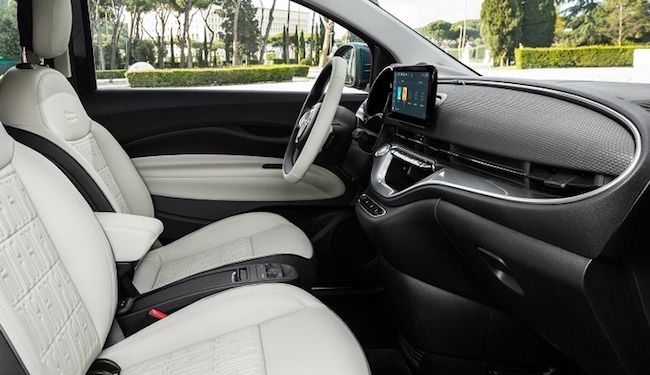 全新一代菲亞特500 EV暫時受提供La Prima版本,配備全景玻璃天窗,並提供珠光海洋綠、金屬礦物灰和三層天藍色的三種獨特的車色。標準套件還包括一些豪華配置,全LED頭燈、17寸鑽石切割鋁制輪轂、鍍鉻車身套件以及車內座椅與儀表板上的皮革包覆等。